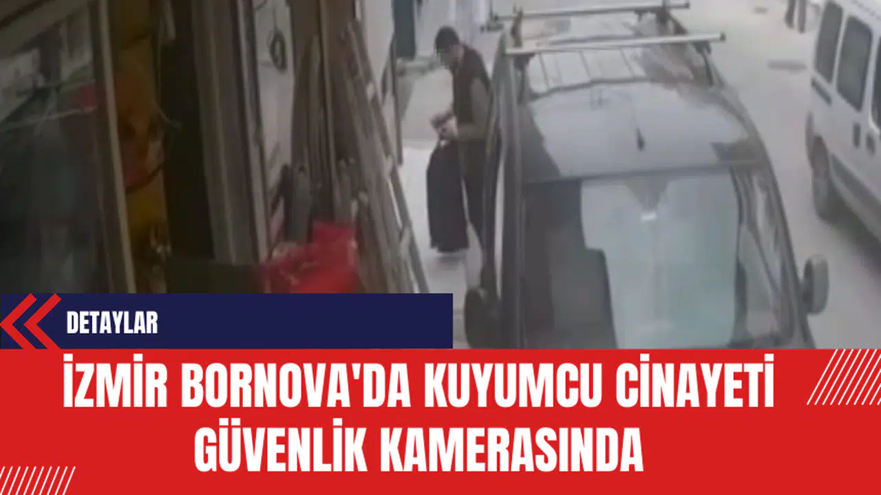 Bornova ilçesinde meydana gelen kuyumcu cinayetiyle ilgili şüphelilerin, olaydan sonra kuyumcunun dükkanına girdiği anlar bir iş yerine ait güvenlik kamerasına yansıdı.