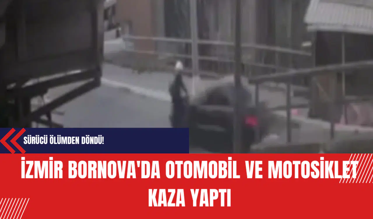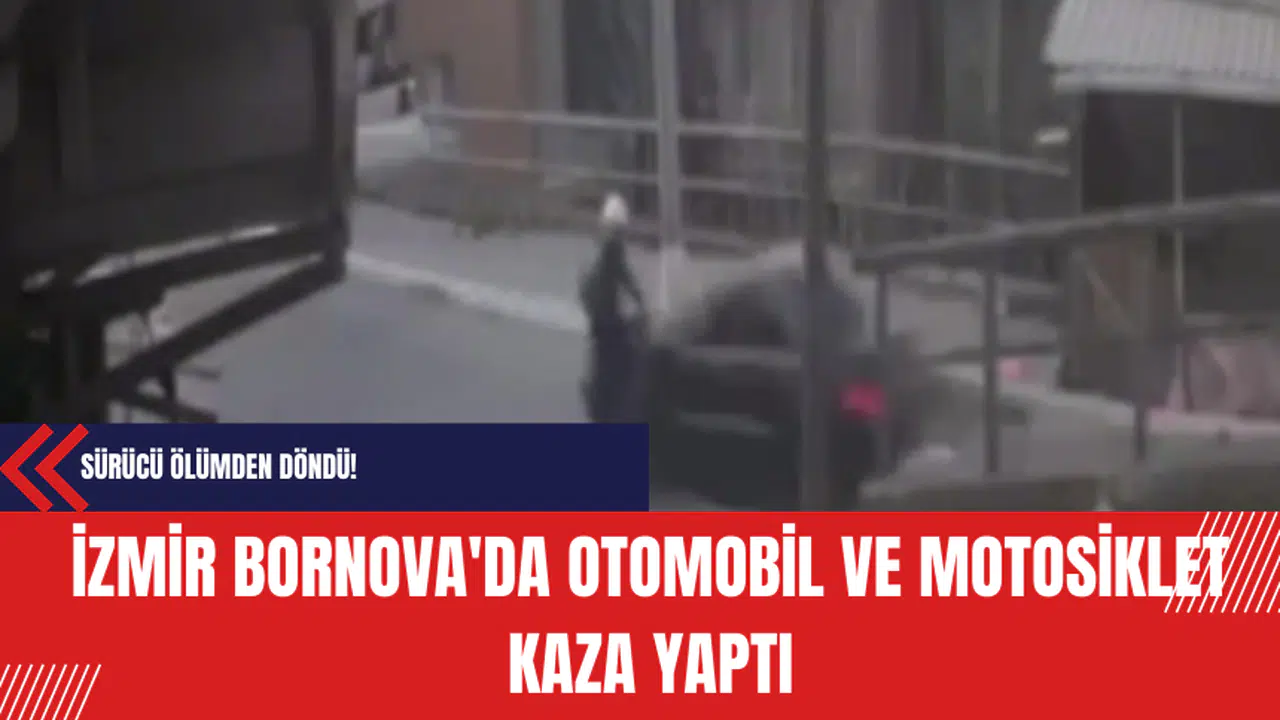 Bornova ilçesinde dün akşam saatlerinde meydana gelen trafik kazasında bir otomobil ile motosiklet kafa kafaya çarpıştı. Kazada motosiklet sürücüsü adeta ölümden döndü. Kaza anı, çevredeki bir iş yerine ait güvenlik kamerasına yansıdı.