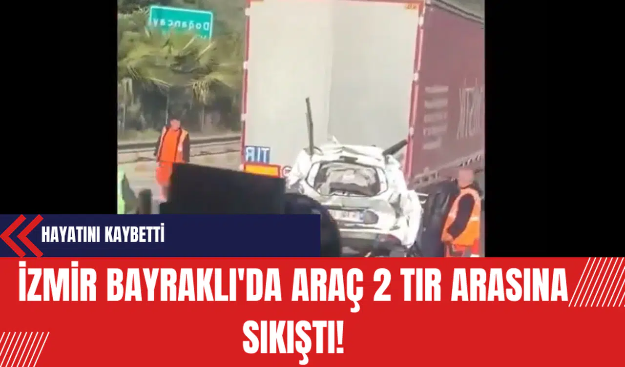 Bayraklı ilçesinde meydana gelen feci kazada, bir araç 2 tırın arasında sıkışarak adeta preslendi. Kazada aracın sürücüsü hayatını kaybetti. Yetkililer, olayla ilgili detaylı bir inceleme başlattı.