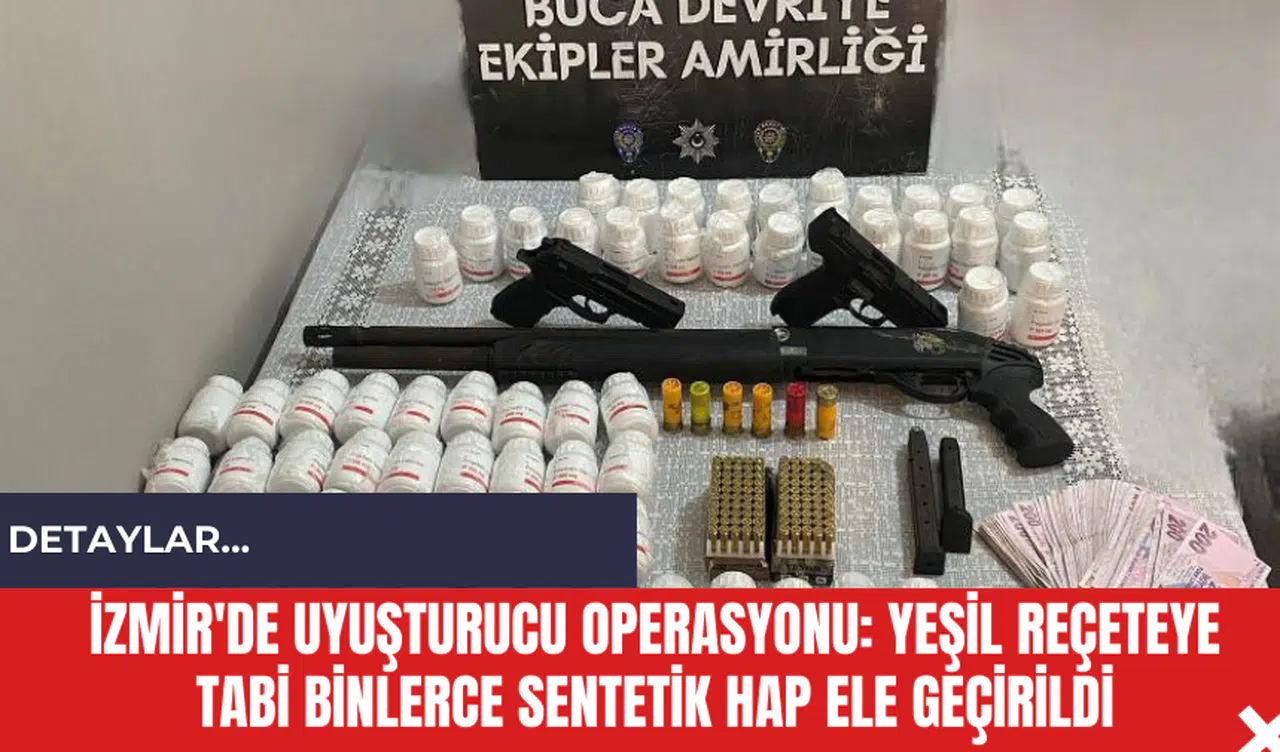 Buca İlçe Emniyet Müdürlüğü Devriye Ekipler Amirliği, T.K. isimli bir şüphelinin uyuşturucu ticareti yaptığı istihbaratı üzerine harekete geçti. Operasyon kapsamında şüphelinin evine yapılan baskında, yeşil reçeteye tabi 5 bin 589 sentetik hap bulundu.