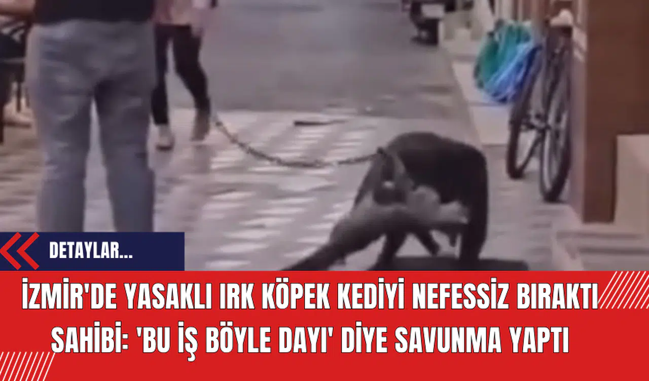 İzmir'in Aliağa ilçesinde, yasaklı ırk bir köpek, sokakta saldırdığı kediyi nefessiz bıraktı. Olay, akşam saatlerinde İzmir Caddesi'nde yaşandı.