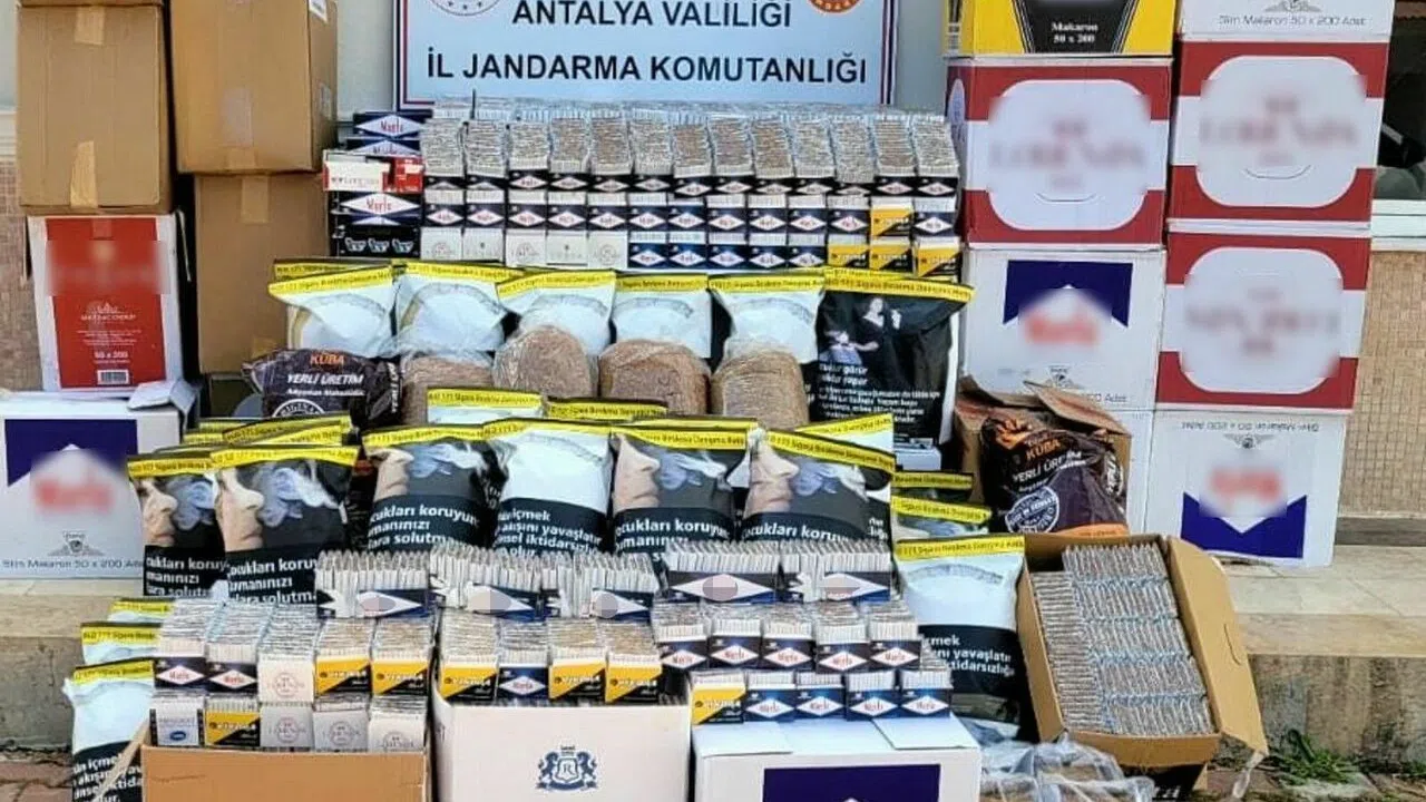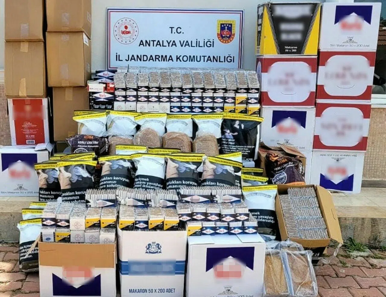 Antalya’da jandarmanın bir iş yerine düzenlediği operasyonda 65 kilogram kıyılmış kaçak tütün, 75 bini boş, 93 bin 700’ü tütün doldurulmuş makaron ele geçirildi.