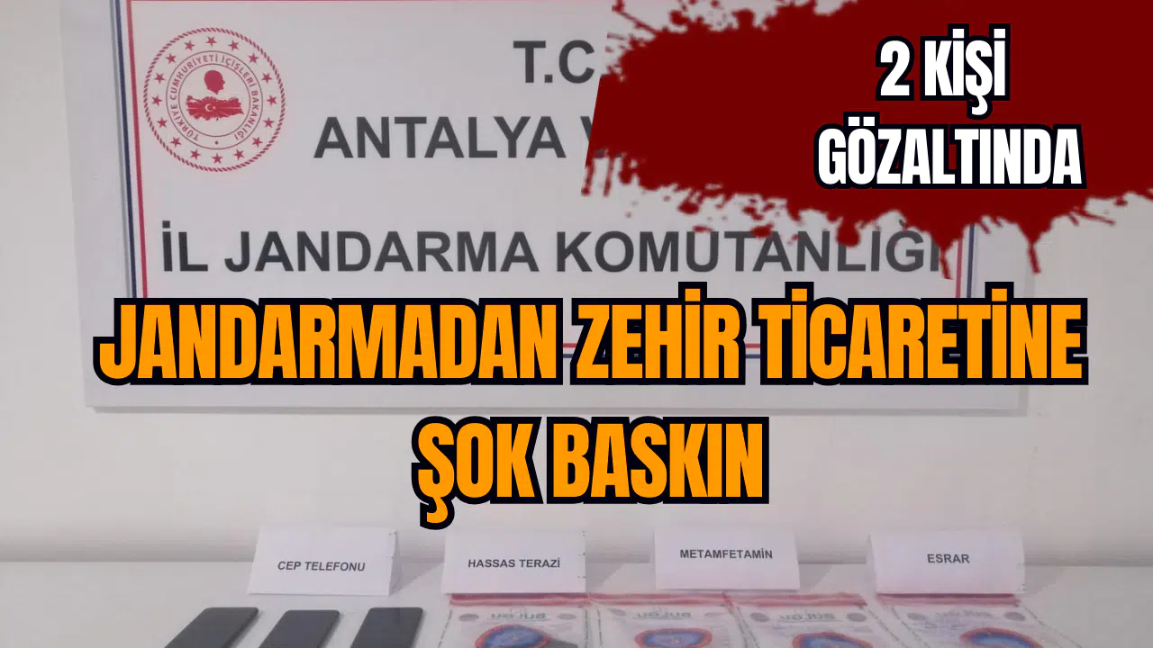 Alanya Cumhuriyet Başsavcılığı talimatları doğrultusunda; Antalya İl Jandarma Komutanlığı KOM Şb. Müdürlüğü ve Alanya İlçe Jandarma Komutanlığı ekipleri tarafından Antalya İli Alanya İlçesinde şüpheli (2) şahsın Uyuşturucu Madde satışı yaptığı ve piyasaya etamfetamin uyuşturucu maddesini süreceklerinin tespit edilmesi üzerine şüpheli şahısların üzerinde, araçlarında ve adreslerinde yapılan arama neticesinde; 650 gr metamfetamin uyuşturucu maddesi, 13 gram esrar uyuşturucu maddesi, 1 adet hassas terazi, 2 adet uyuşturucu madde içme aparatı ele geçirildi. 2 şüpheli şahıs yakalanarak gözaltına alındı.
