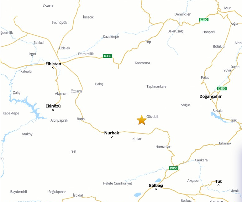 Depremin derinliği 7 kilometre olarak belirlenirken, merkez üssünün 38.0114 enlem ve 37.5758 boylamında olduğu tespit edildi.