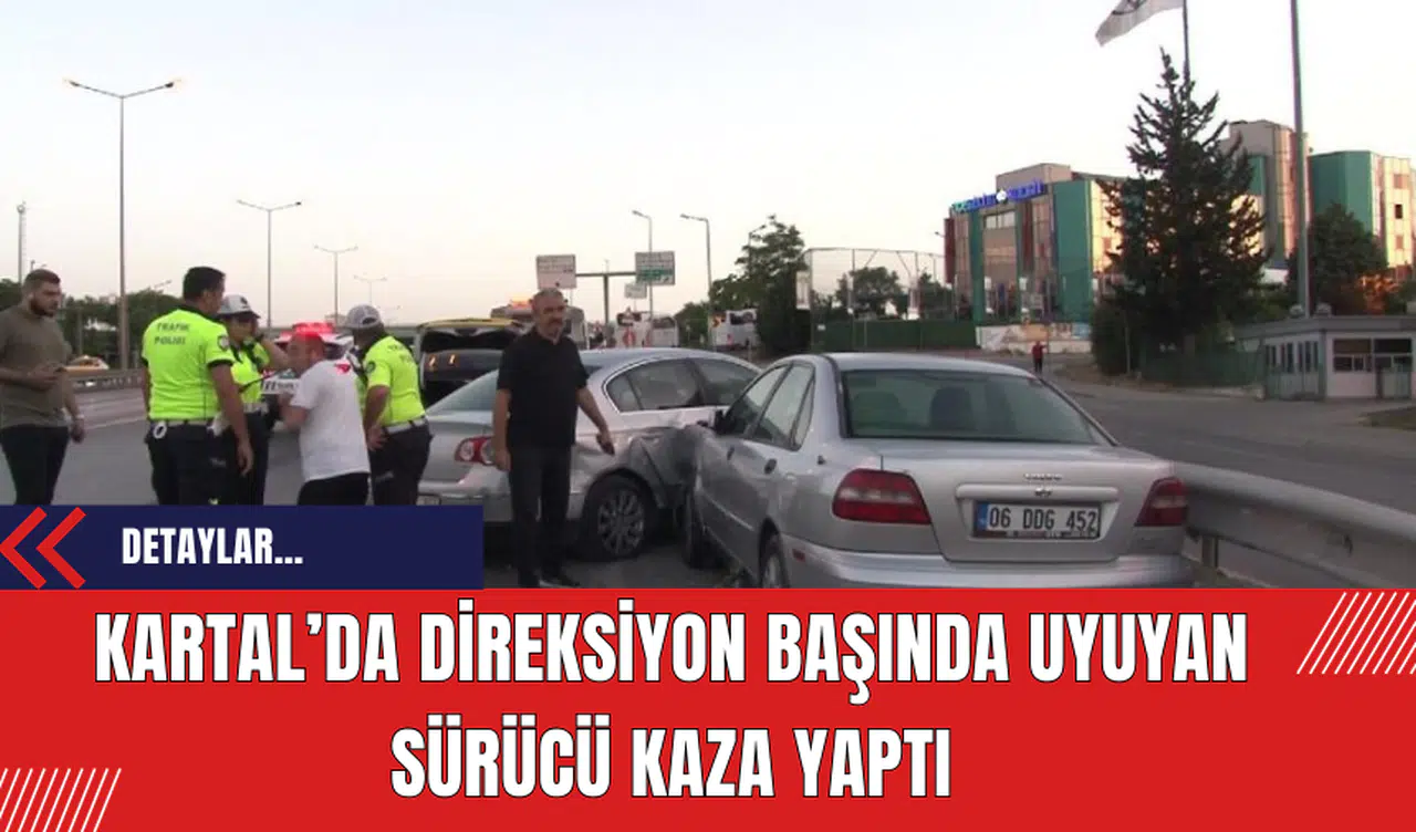 İstanbul'un Kartal İlçesinde, D-100 Karayolu Edirne istikametinde sabah saat 05.00 sıralarında meydana gelen kazada, direksiyon başında uyuyan sürücü, seyir halindeki iki otomobile çarptı. Volkswagen marka 16 TL 958 plakalı aracın sürücüsü, önce aynı istikamette seyir halinde olan Fiat marka 34 TYG 40 plakalı ticari taksiye, ardından sağ şeritten gelen Volvo marka 06 DOG 452 plakalı otomobile çarptı.