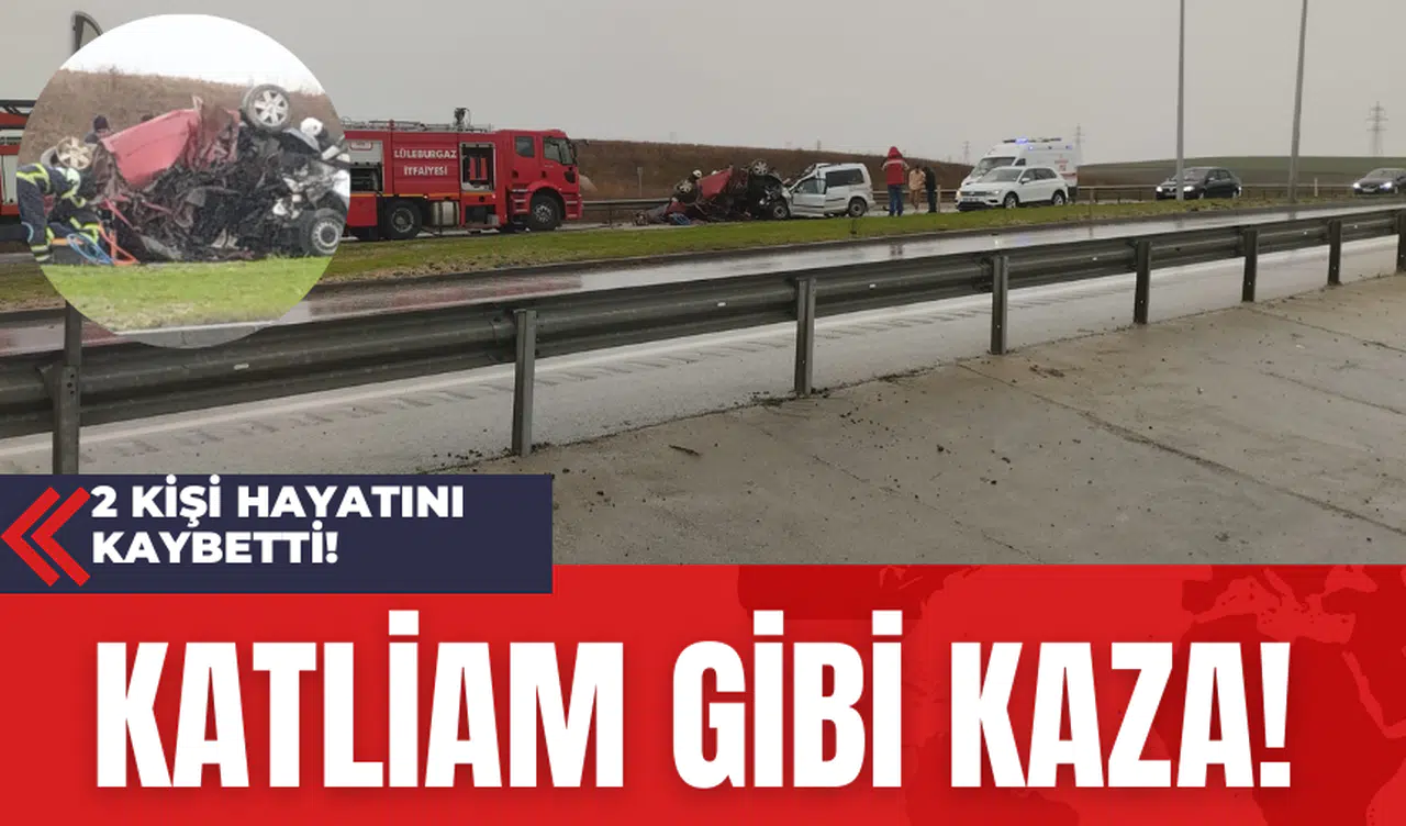 Kırklareli'nin Lüleburgaz ilçesinde meydana gelen trafik kazasında, kontrolden çıkan bir otomobilin karşı şeritteki araçla çarpışması sonucu 2 kişi hayatını kaybetti, 1 kişi ise yaralandı.