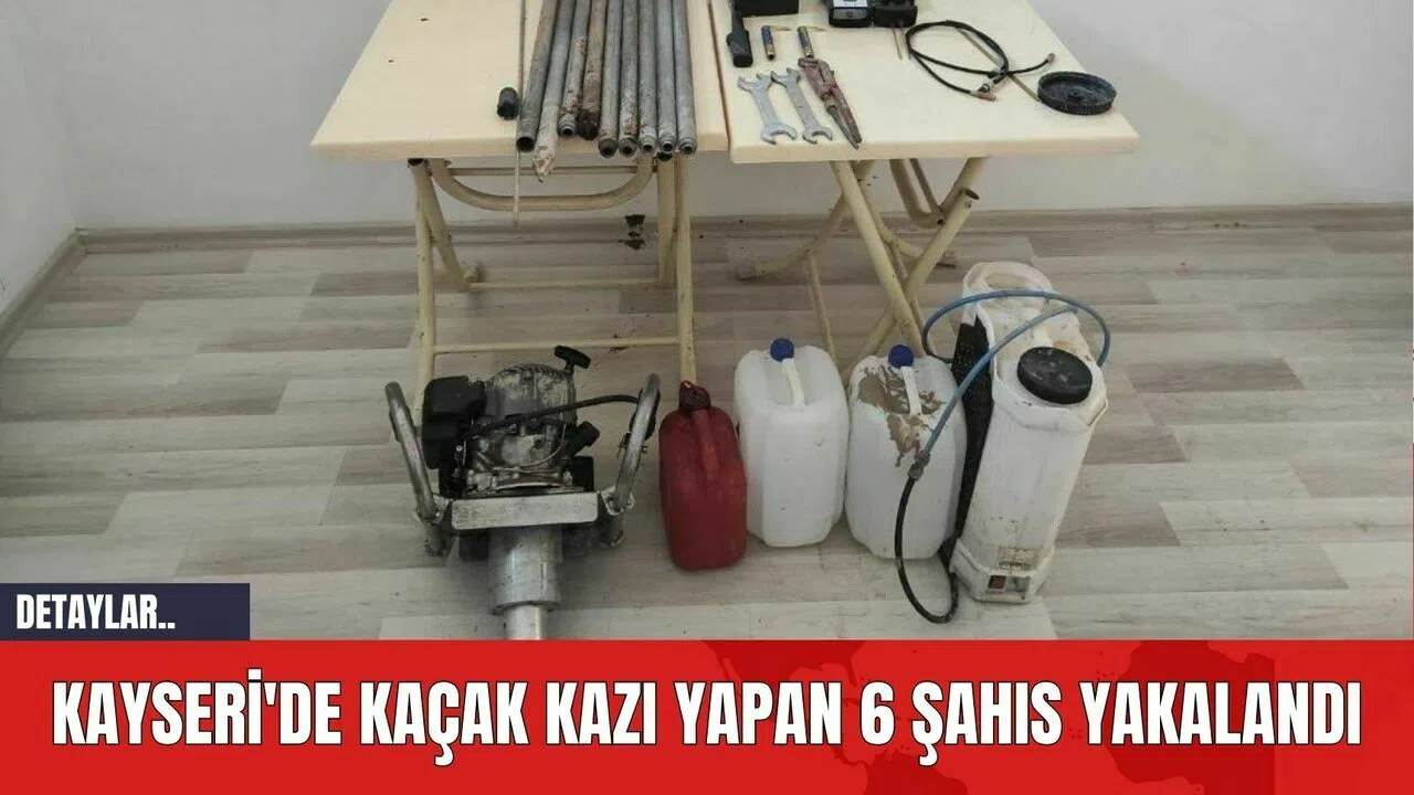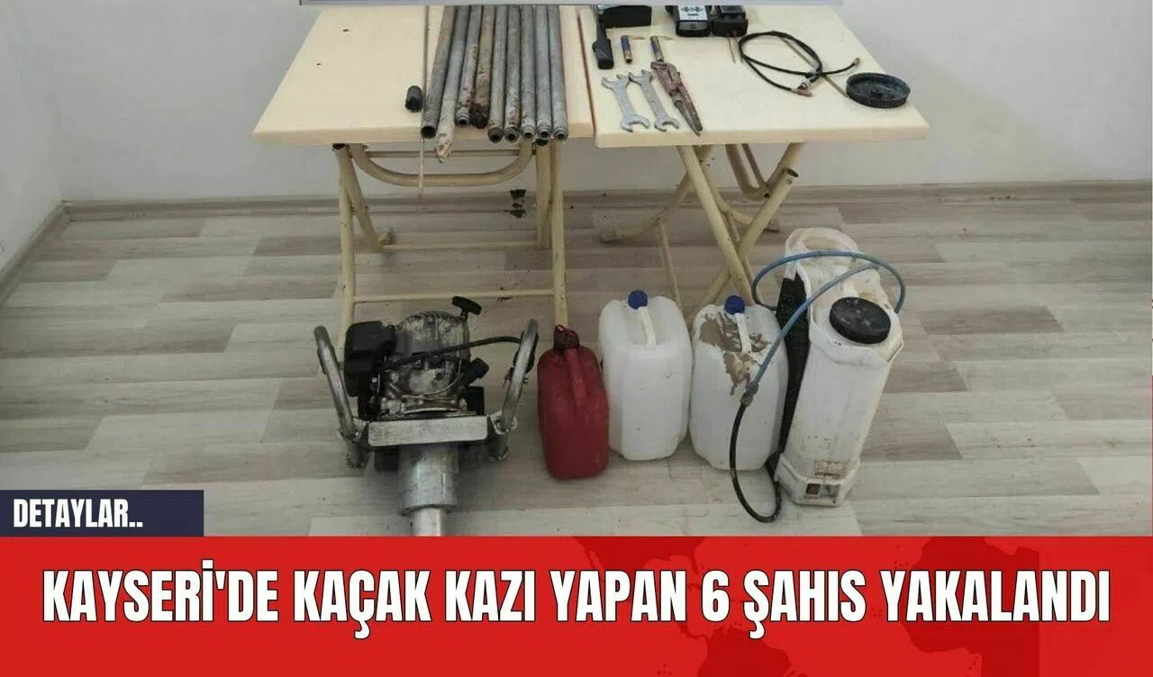 Kayseri'de jandarma ekipleri tarafından yapılan çalışmalarda, kaçak kazı yapan 6 şahısın yakalandığı bildirildi. Kaçak kazıda kullanılan malzemelere de el konuldu.