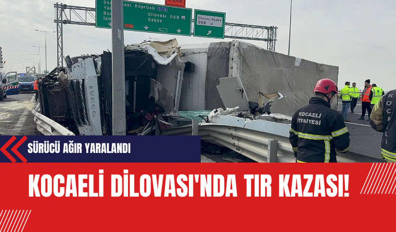 Kocaeli'nin Dilovası ilçesinde meydana gelen trafik kazasında, bir tırın kontrolden çıkarak karşı şeride geçmesi sonucu ağır bir kaza meydana geldi. Kazada, sürücü ağır şekilde yaralandı.