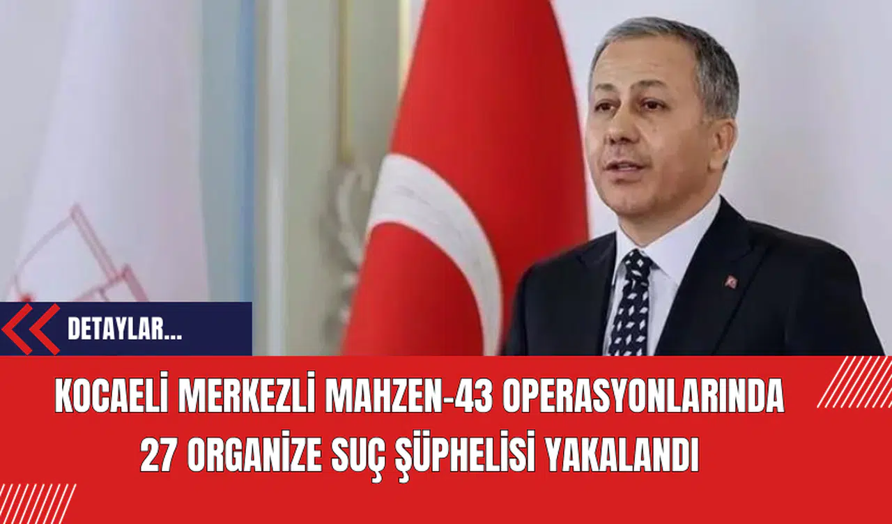 İçişleri Bakanı Ali Yerlikaya, Kocaeli merkezli 5 ilde düzenlenen Mahzen-43 operasyonlarında; elebaşılığını Uğur Özgen'in (Cezaevinde) yaptığı Organize Suç Örgütü üyesi 27 şüphelinin yakalandığını açıkladı.