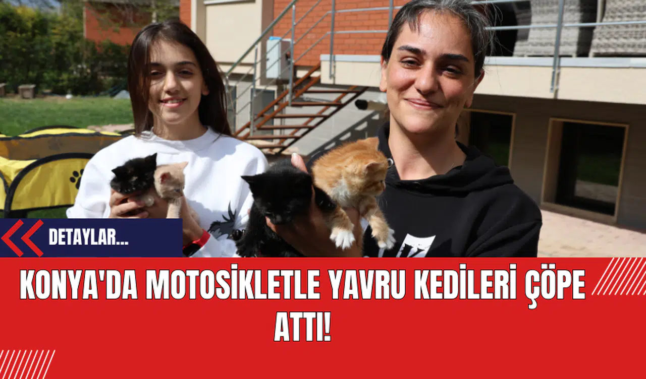 Konya'da bir motosiklet sürücüsü, çöp konteynerinin yanına gelerek içindeki 4 yavru kediyi çöpe attı. Olay, güvenlik kamerasına yansırken, kedilerin yardım çığlıkları sokak sakinlerinin dikkatini çekti. Olayın tanıklarından biri olan Burcu Kocaer, kedileri çöpten alarak sahiplendi.