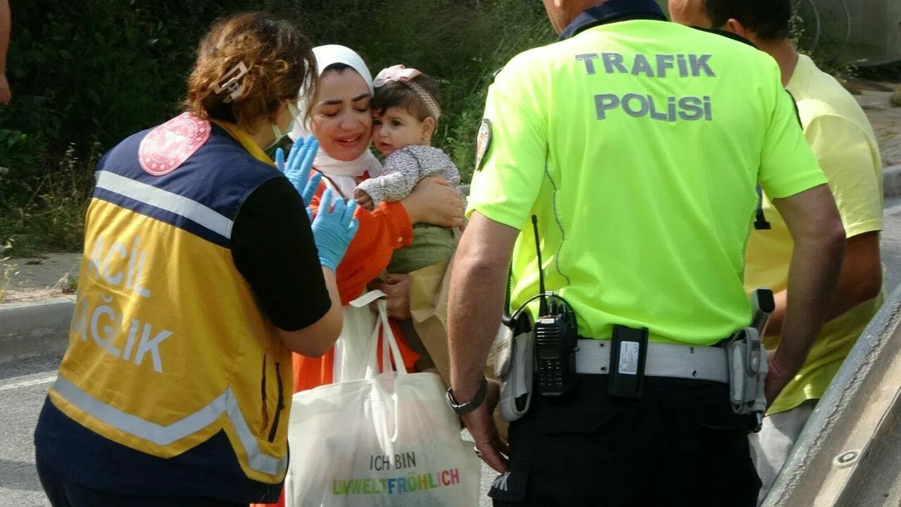 Kazanın ardından otomobilden çıkarılan araç sürücüsü, kucağındaki bebekle birlikte trafik ekiplerine olayı anlatırken gözyaşlarına hâkim olamadığı gözlendi.