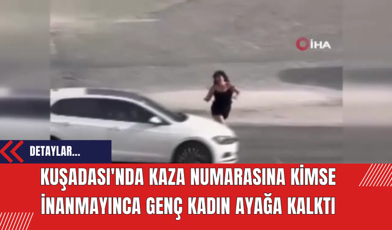 Kuşadası Aydın Bulvarı üzerinde gerçekleşen trajikomik olay, bir kadının trafiği kilitlemesiyle başladı. Objektiflere yansıyan görüntüler, ayakkabısız bir genç kadının, bir erkekle tartıştıktan sonra karayoluna çıkarak aracın önüne atladı.