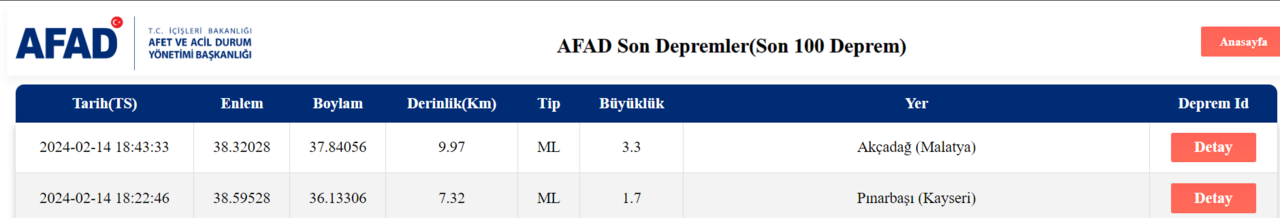 Malatya'nın Akçadağ ilçesinde 14 Şubat 2024 tarihinde saat 18:43'te 3.3 büyüklüğünde bir deprem meydana geldi. AFAD'dan alınan bilgilere göre, depremin yerin 9.97 kilometre derinliğinde gerçekleştiği belirtildi.