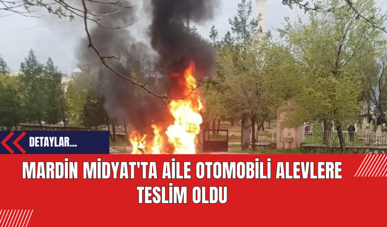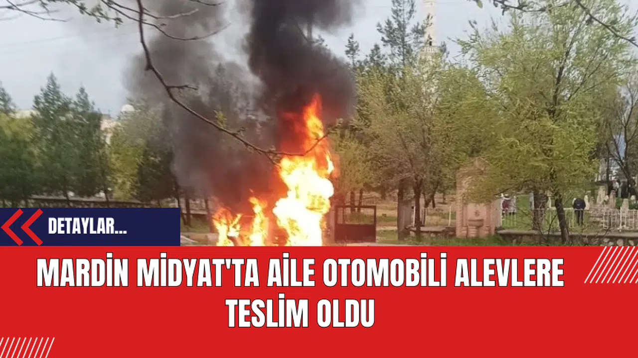 Mardin'in Midyat ilçesinde mezarlık ziyareti için yola çıkan bir ailenin aracı, aniden alevlere kapıldı.