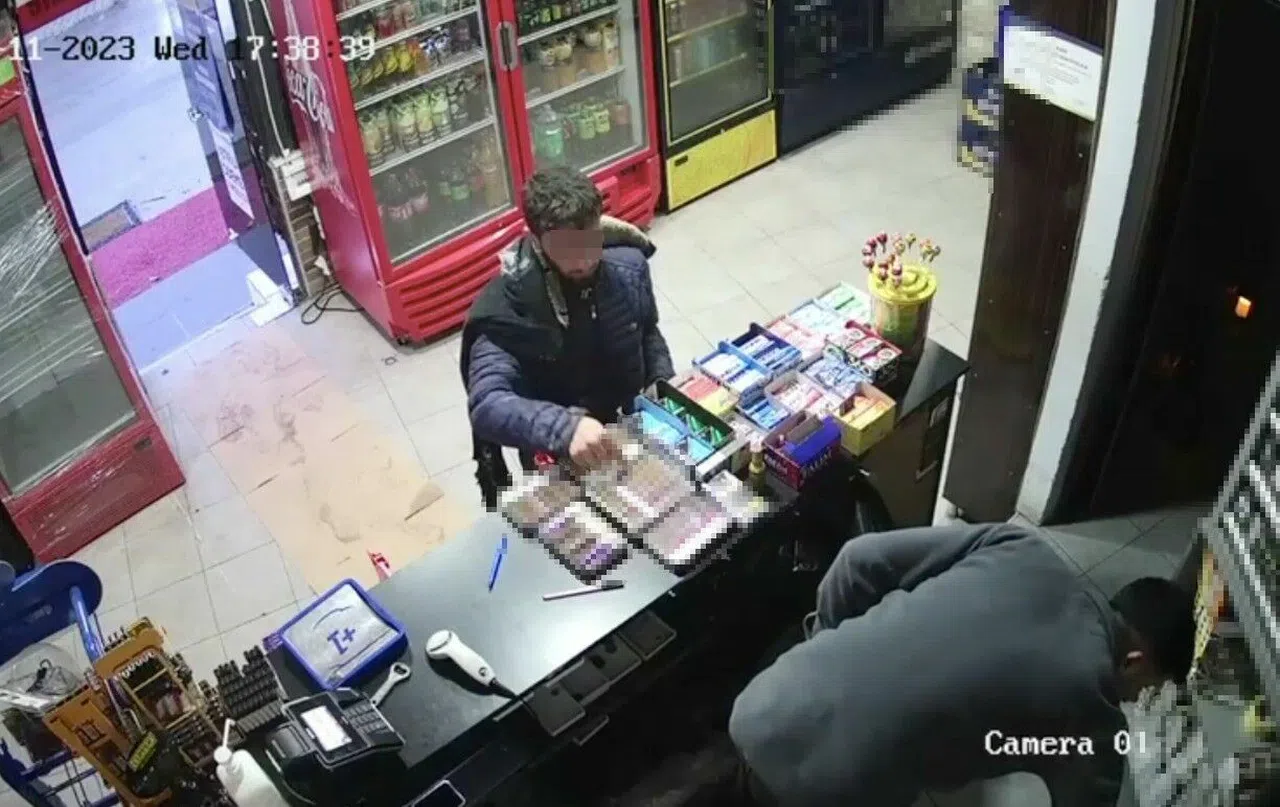 Hırsız hafta bir kez geldiği marketten önce sigara alıp, sonra da dükkân çalışanına fark ettirmeden puro çalma anı güvenlik kameraları tarafından saniye saniye kaydedildi.