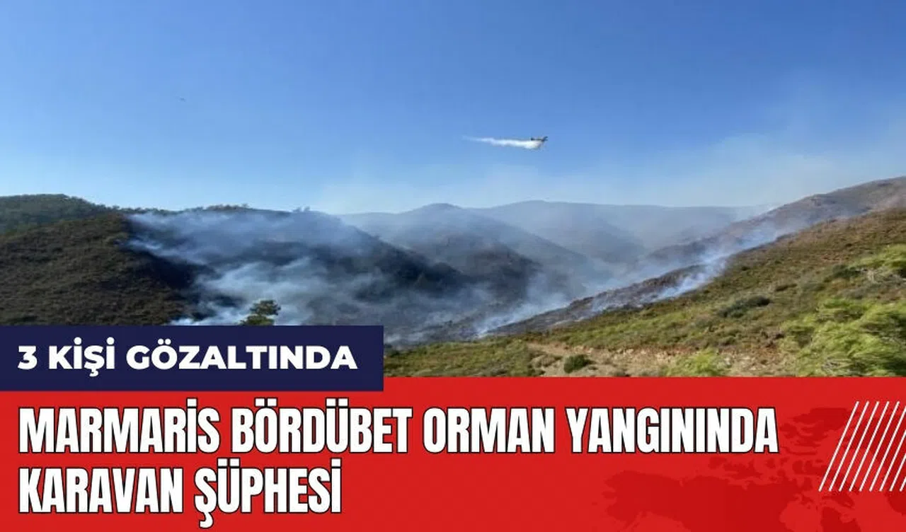 Muğla'nın Marmaris ilçesi Bördübet mevkiinde çıkan orman yangınıyla ilgili olarak, olay yerinden uzaklaşırken görüntülenen karavanlı şahıslar savcılık talimatı ile gözaltına alındı. Yangının çıkış sebebiyle ilgili soruşturma sürüyor.