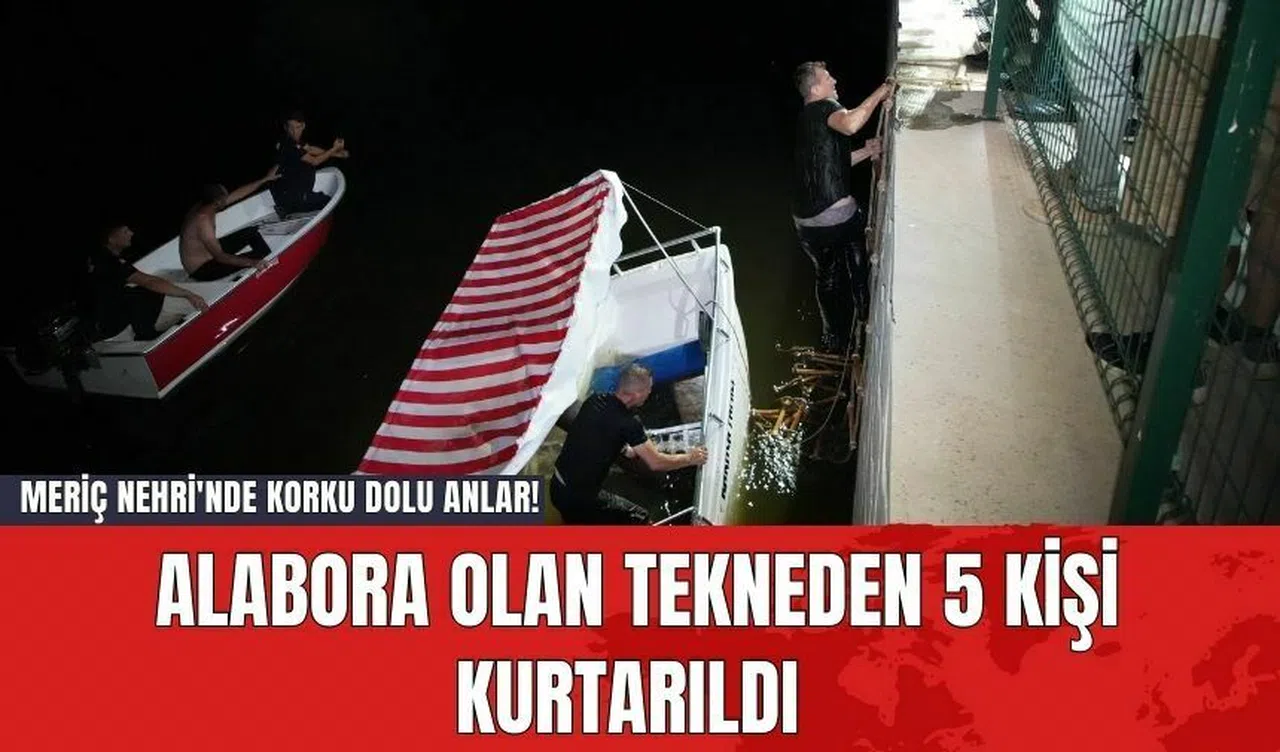 Edirne'de Meriç Nehri'nde yaşanan korku dolu anlar, 5 kişilik bir arkadaş grubunun teknesinin alabora olmasıyla başladı. Nehrin ortasında mahsur kalan kişiler, yardım çığlıkları atarak çevreden yardım bekledi.