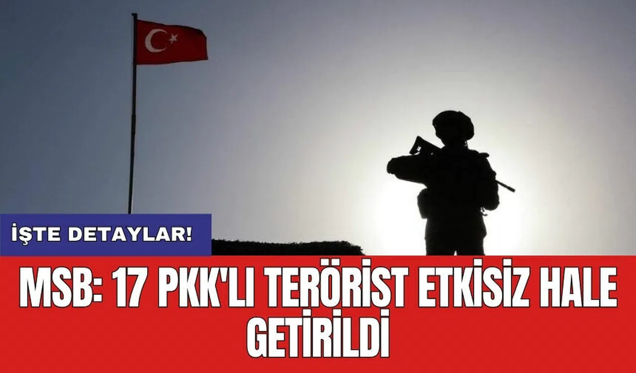 Milli Savunma Bakanlığı, Pençe-Kilit Operasyonu bölgelerinde tespit ettiği 10 P*K’lı terör*st ile Suriye’nin kuzeyindeki Zeytin Dalı ve Barış Pınarı bölgelerinde belirlediği 7 P*K/Y*G'li terör*sti etkisiz hâle getirdiğini bildirdi.