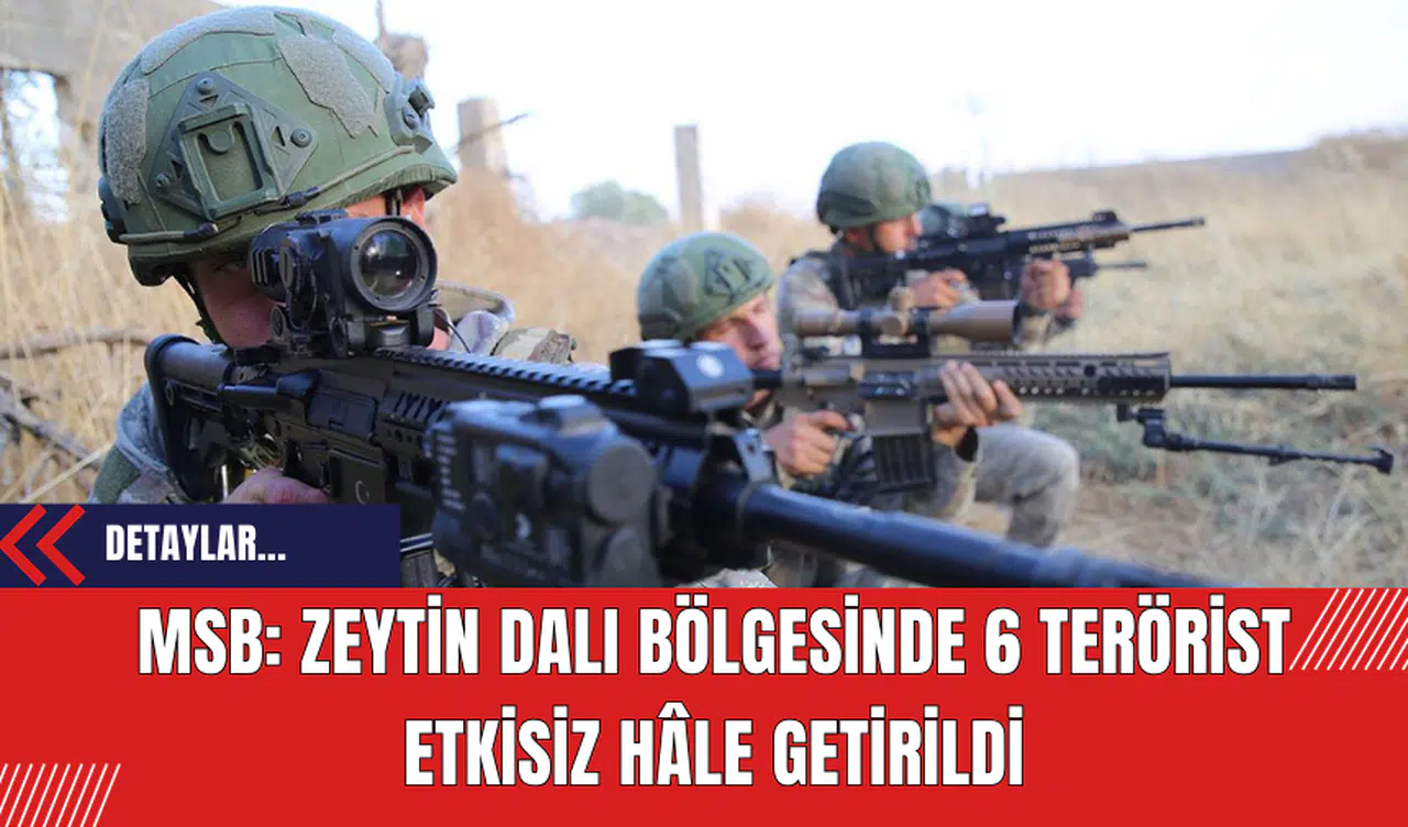 Milli Savunma Bakanlığı (MSB), Zeytin Dalı Harekât Bölgesi'nde güvenlik güçlerinin gerçekleştirdiği operasyonlar kapsamında 6 PKK/YPG mensubu teröristin etkisiz hâle getirildiğini duyurdu. Bakanlık, operasyonların bölgedeki huzur ve güvenliği sağlamaya yönelik olarak devam ettiğini belirtti.