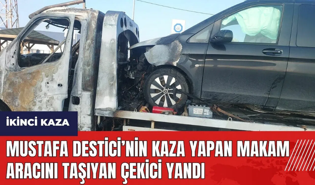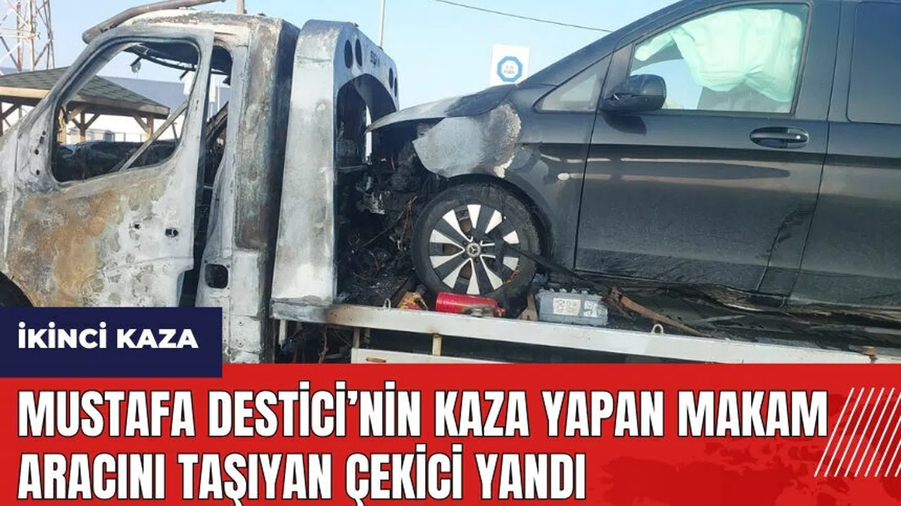 Büyük Birlik Partisi (BBP) Genel Başkanı Mustafa Destici'yi taşıyan makam aracı dün Tokat’ta kaza yapmıştı. Makam aracını taşıyan çekici ise bugün alev alev yandı.