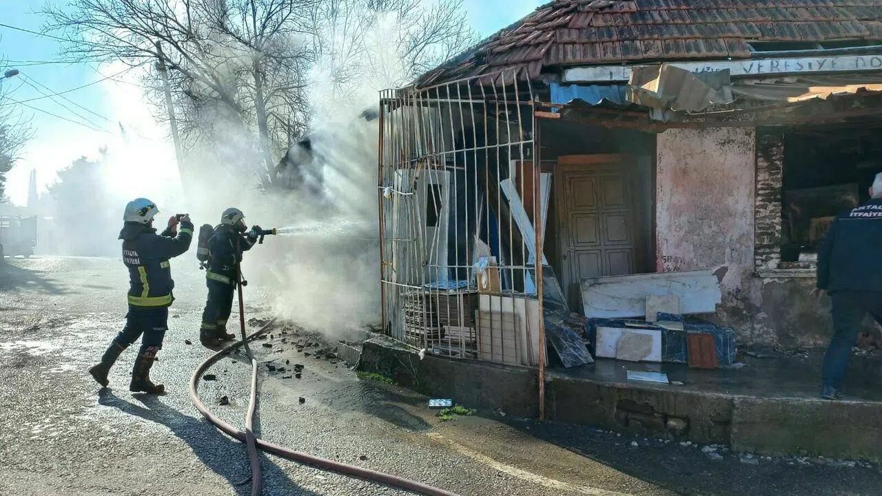 Antalya’da müstakil evde çıkan yangında ikinci el eşyalar yandı.