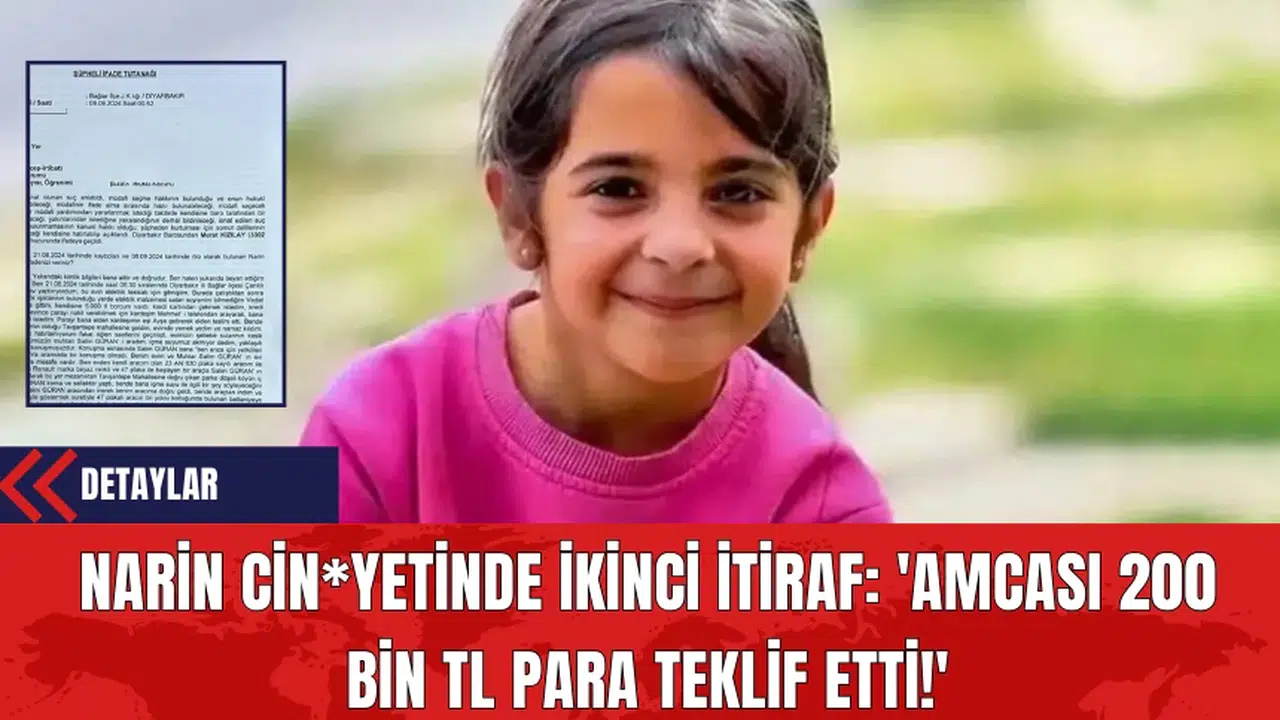 Gözaltına alınan zanlı, cenazenin nasıl bulunduğunu ve amcasının kendisine nasıl bir teklif sunduğunu anlattı. İfadesinde, “Muhtar (Narin’in amcası) cesedi çuval içerisinde bana verdi. Çuvalı alıp dereye götürdüm” dedi. Zanlı, ayrıca amcanın kendisine cenazeyi yok etmesi için 200 bin TL teklif ettiğini de ifade etti.