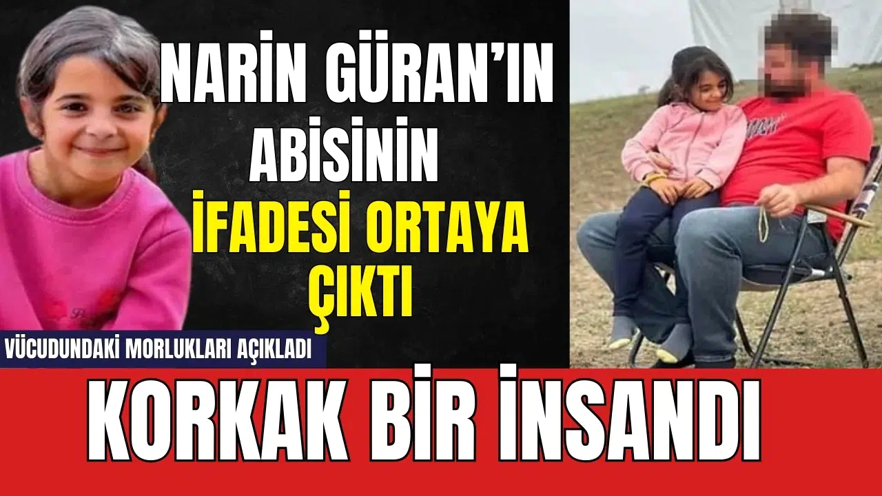 Narin'in abisi Enes Güran'ın ifadesi ortaya çıktı. Gelişmenin detaylarını CNN Türk'te Hande Fırat ile Gece Görüşü programında CNN Türk İstanbul Haber Müdürü Nihat Uludağ aktardı. Enes Güran kardeşinin kaybolduğu haberini 19.11'de annesinin 'Narin yemeğe gelmedi' sözleri ile öğrendiğini iddia etti. Enes Güran daha önce de iddia ettiği gibi kolundaki ısırık izini üzüntüden kendisinin yaptığını söyledi.
