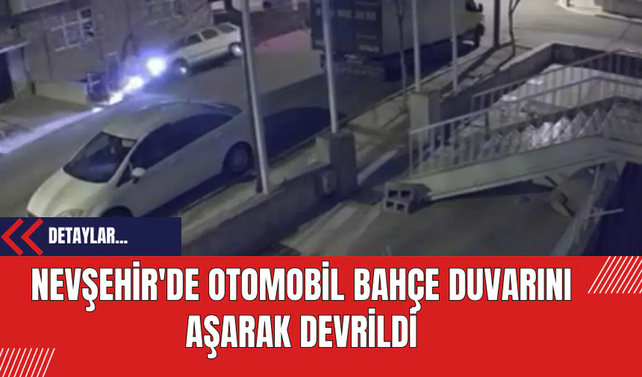 Nevşehir'de yaşanan bir trafik kazasında, bir otomobilin kontrolden çıkarak bir bahçe duvarını aşması sonucu devrildiği anlar, çevredeki güvenlik kameralarına saniye saniye yansıdı.
