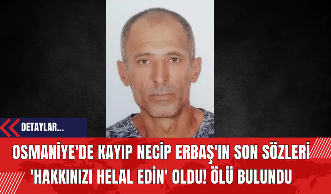 Osmaniye'nin Kadirli ilçesinde 4 gün önce kaybolan ve ailesi tarafından kayıp başvurusunda bulunulan 46 yaşındaki Necip Erbaş, Yenigün köyü yakınlarında ölü olarak bulundu.