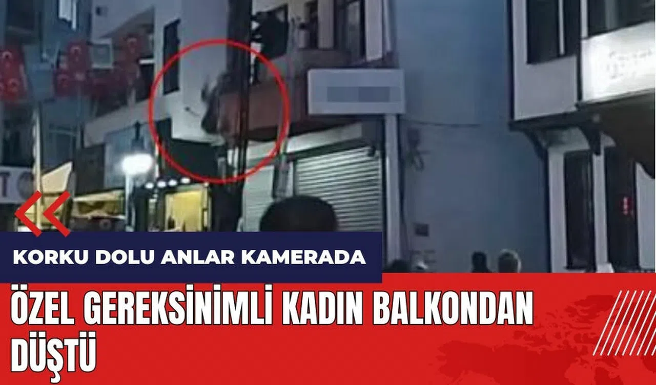 Görüntülerde, özel gereksinimli kadının balkonda bir süre asılı kalması ve ardından yere düşmesi dramatik bir şekilde gözler önüne seriliyor. Olayın şok edici detayları, bölgedeki vatandaşların hızla müdahale etmesiyle birlikte ortaya çıktı.