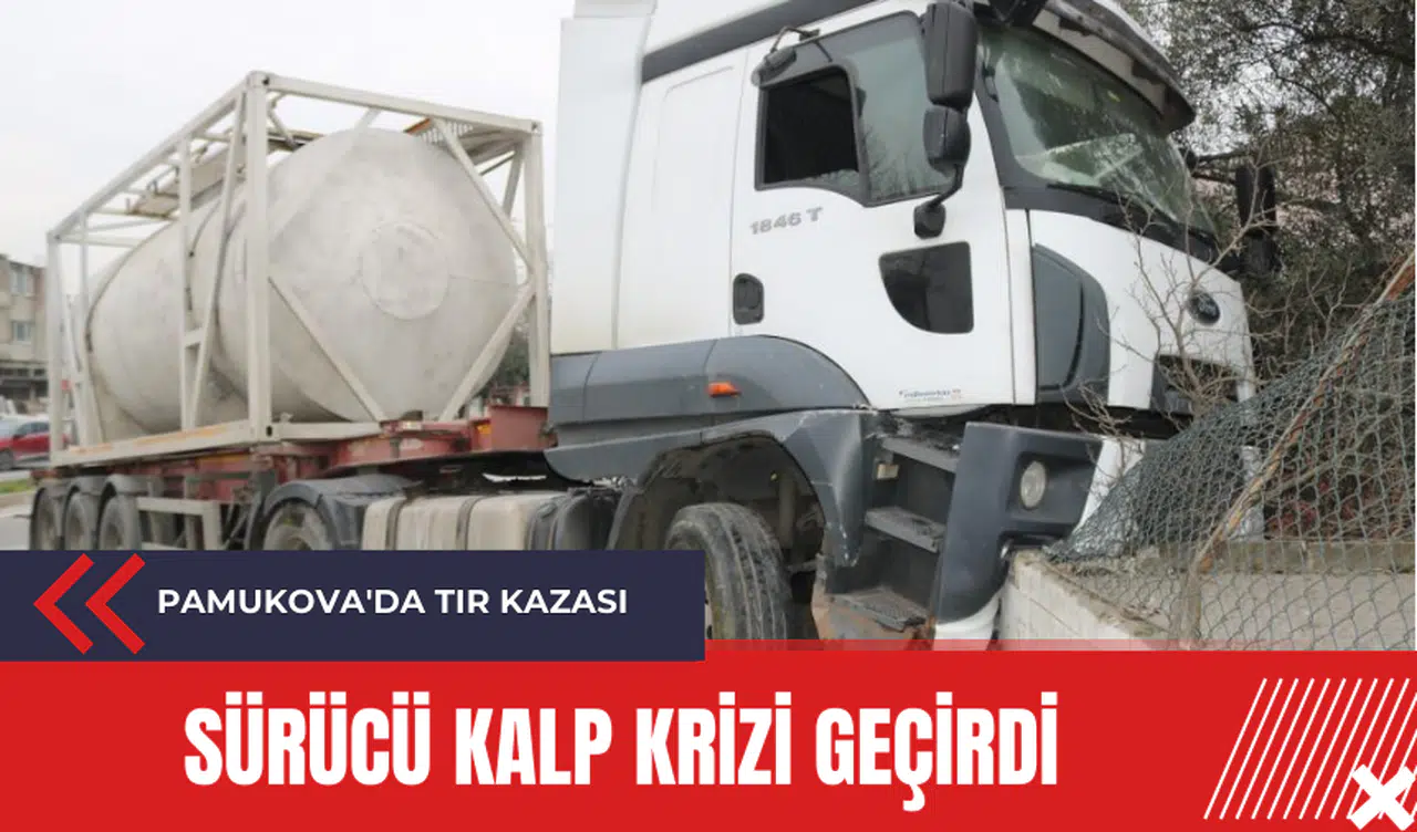Sakarya'nın Pamukova ilçesinde meydana gelen trafik kazasında, seyir halindeki bir tırın sürücüsü kalp krizi geçirerek kontrolünü kaybetti. Olayda, tır karşı şeride geçerek bir evin duvarına çarptı.