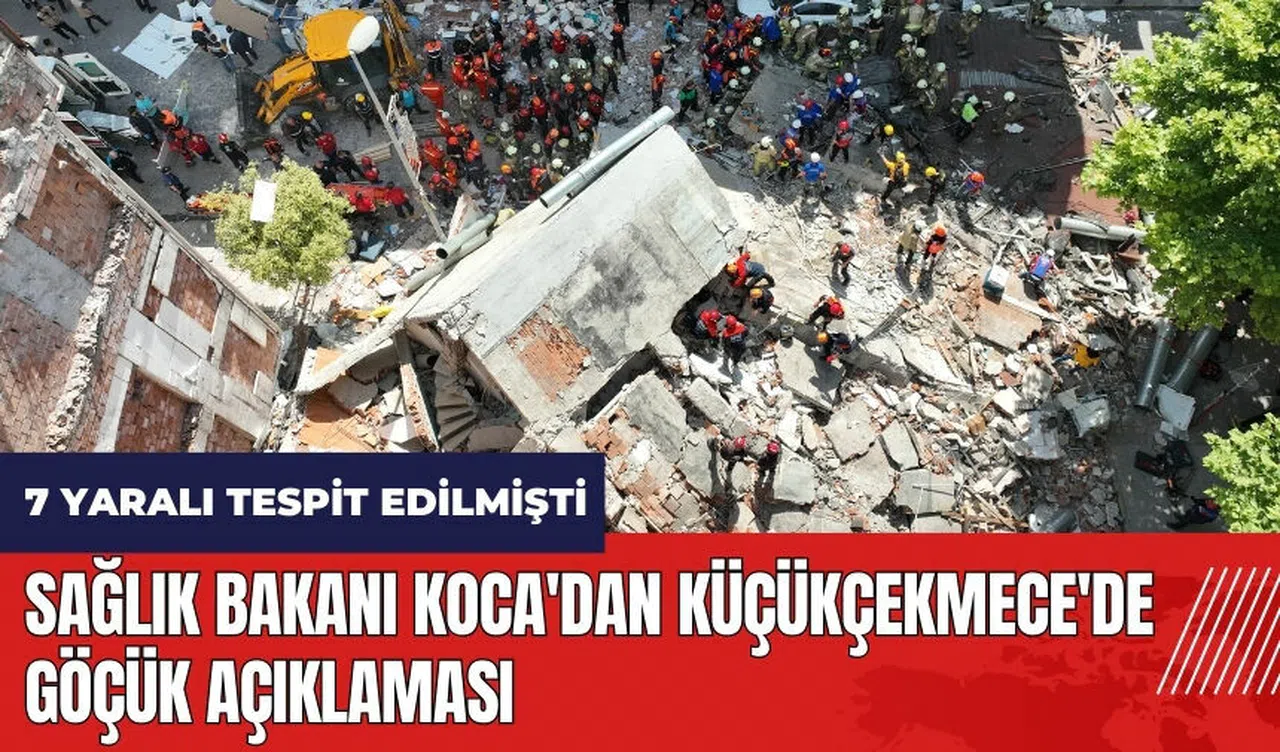 Bakan Koca, göçükte 7 kişinin yaralandığını belirterek, 'Bu sabah İstanbul Küçükçekmece'de bir binada meydana gelen göçükte saat 09.35 itibariyle 7 yaralı olduğunu tespit ettik. 5 yaralı hastaneye nakledildi, 2 kişi tedaviye ihtiyacı olmadığını belirttiler. Olay yerine 15 ambulans ve 5 UMKE Timi görevlendirilmiştir. Olaydan etkilenenlere geçmiş olsun dileklerimi sunuyorum' dedi.