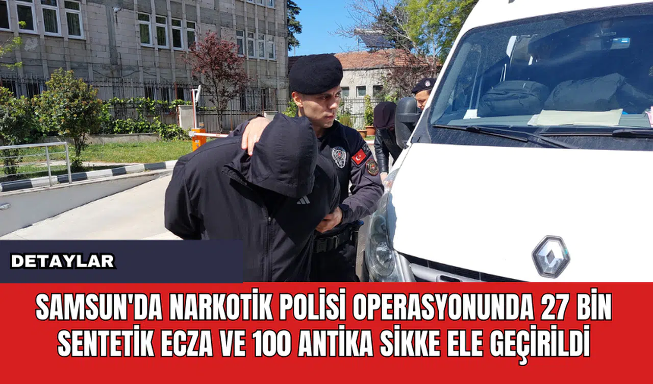 Samsun'da gerçekleştirilen narkotik polisi operasyonunda 27 bin sentetik ecza ile birlikte Osmanlı dönemine ait 100 antika sikke ele geçirildi. Operasyon kapsamında yakalanan 2 kişi, mahkeme tarafından tutuklandı.