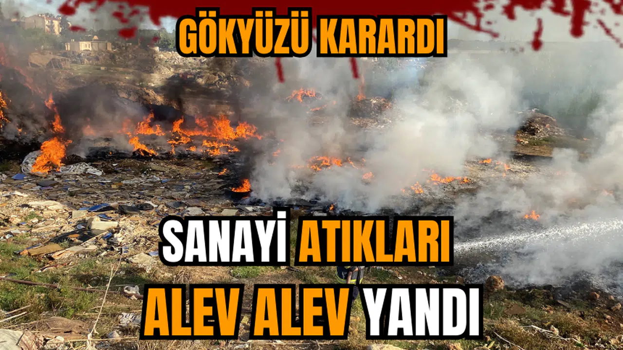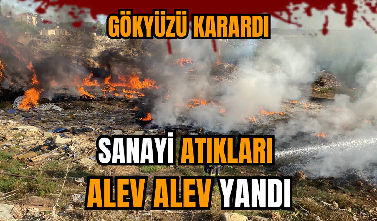 Antalya'nın Aksu ilçesinde boş arazide sanayi atıklarının tutuşması ile başlayan yangında çıkan dumanlar gökyüzünü siyaha bürüdü.