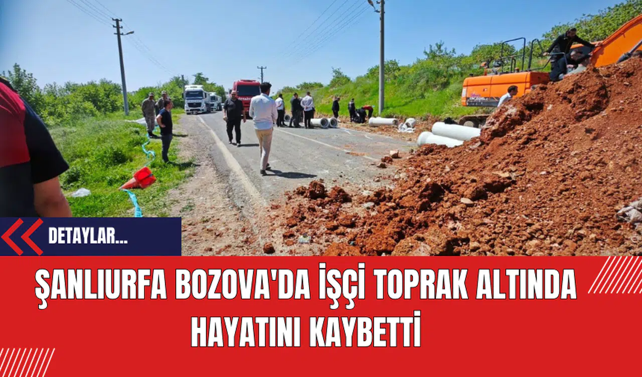 Şanlıurfa'nın Bozova ilçesine bağlı Yeşilova kırsal Mahallesi'nde, kanalizasyon borusu döşenirken meydana gelen kazada bir işçi toprak altında kalarak hayatını kaybetti.