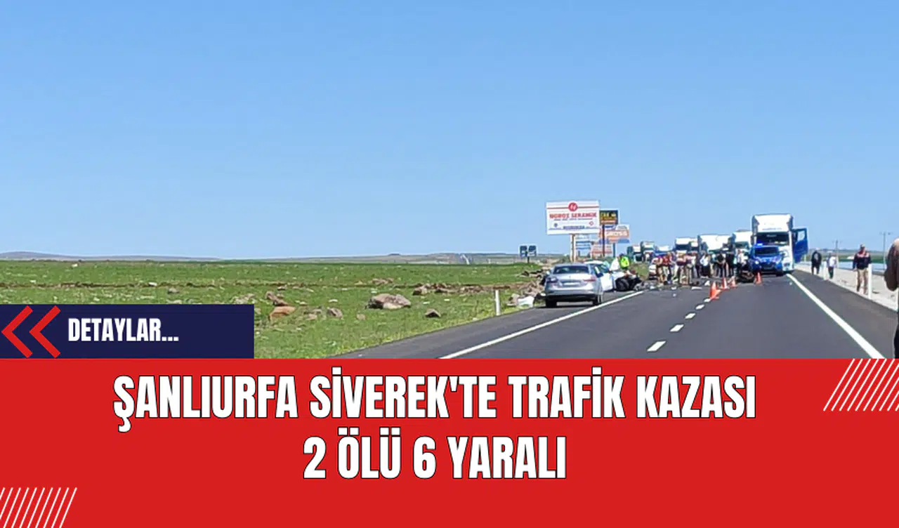 Şanlıurfa'nın Siverek ilçesinde meydana gelen trafik kazasında 2 kişi hayatını kaybetti, 6 kişi ise yaralandı.