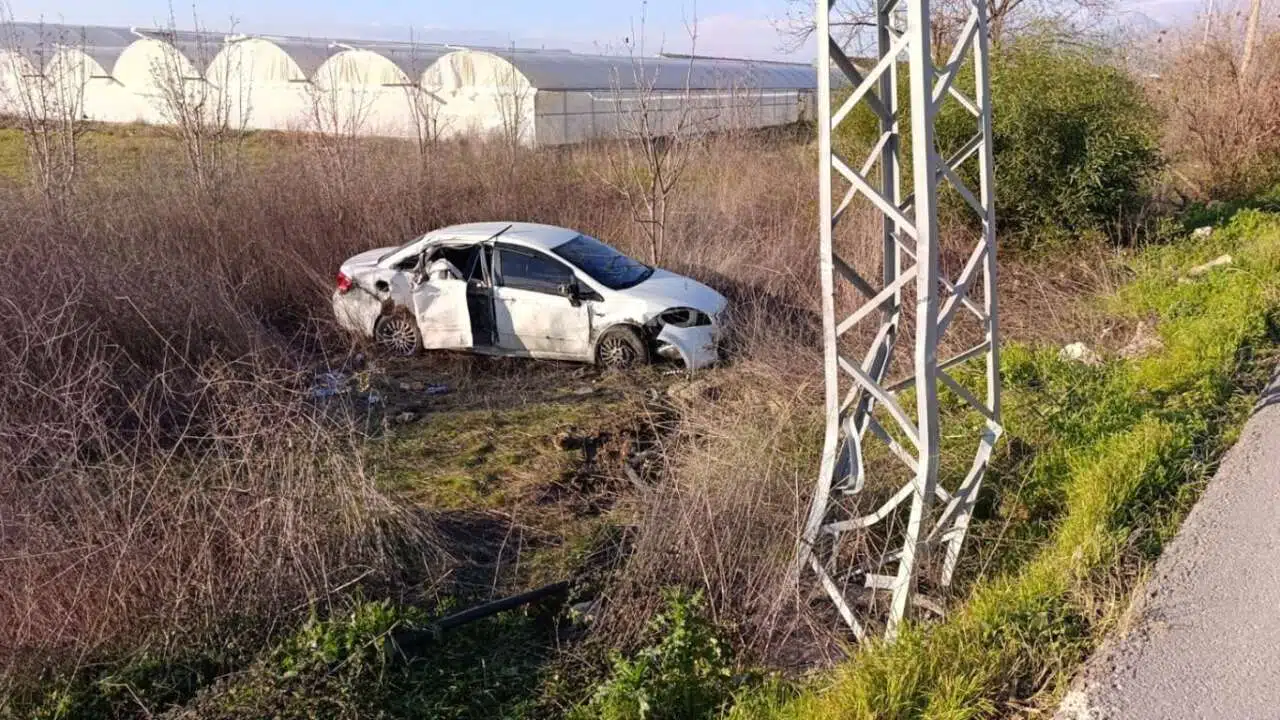 Antalya'nın Serik ilçesinde meydana gelen trafik kazasında 4 kişi yaralandı. Kaza, dün saat 15.30 sıralarında Çandır Mahallesi’nde yaşandı. F.K. yönetimindeki 07 YPS 06 plakalı otomobil, sürücüsünün direksiyon hâkimiyetini kaybetmesi sonucu yoldan çıktı. Kontrolden çıkan araç önce elektrik direğine çarptı, ardından tarlaya savruldu.