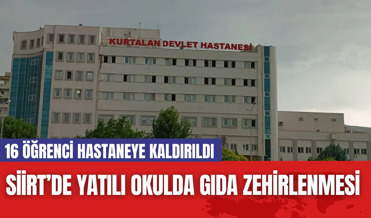 Siirt’in Kurtalan İlçesinde bulunan Kurtalan Ekspres Anadolu Lisesi yurdunda 16 öğrenci, akşam yemeğinden sonra zehirlenme şüpheleriyle hastaneye kaldırıldı. İddiaya göre, yedikleri yemekten kısa bir süre sonra öğrencilerde bulantı, baş dönmesi ve karın ağrısı gibi semptomlar görülmeye başladı.