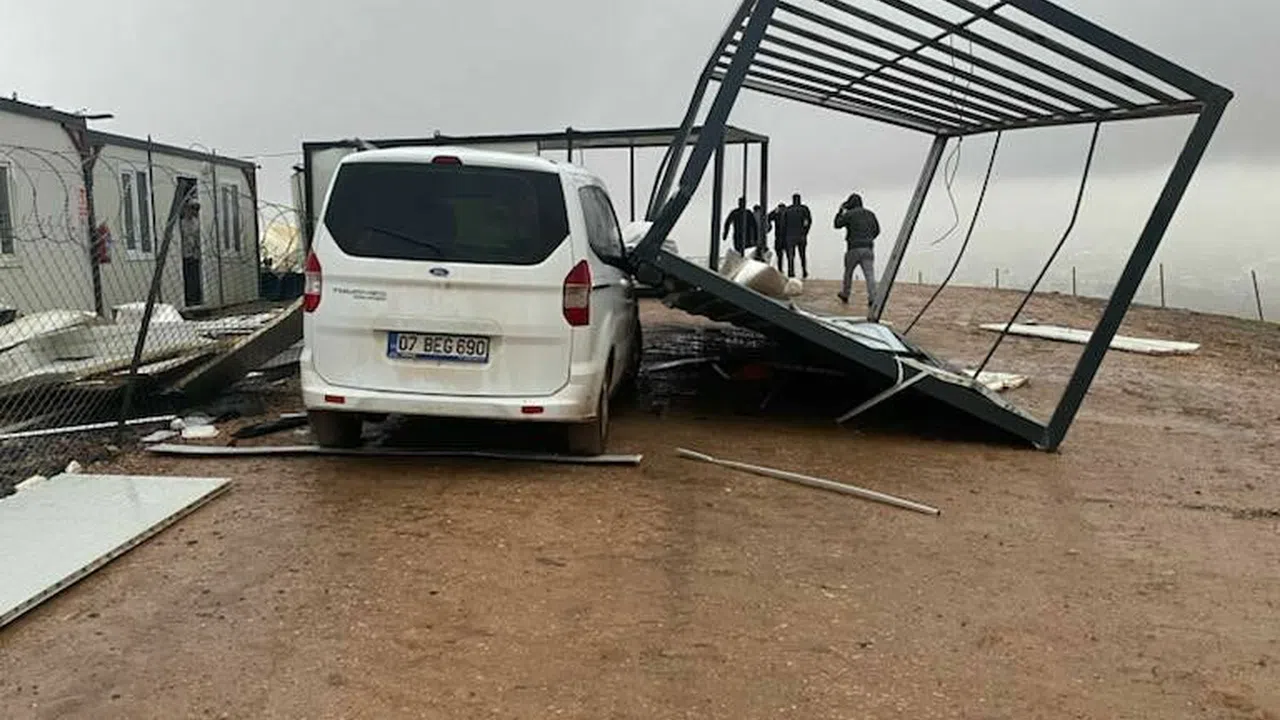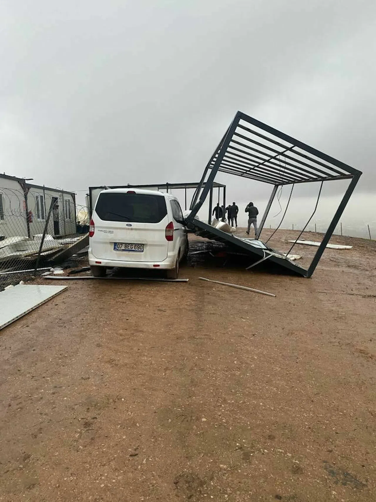 Siirt'in Kurtalan ilçesine bağlı Yayıkdere köyünde faaliyet gösteren güneş enerji santrali şantiyesinde meydana gelen olayda, şiddetli fırtına nedeniyle devrilen konteynerlerde bulunan 2 işçi yaralandı.