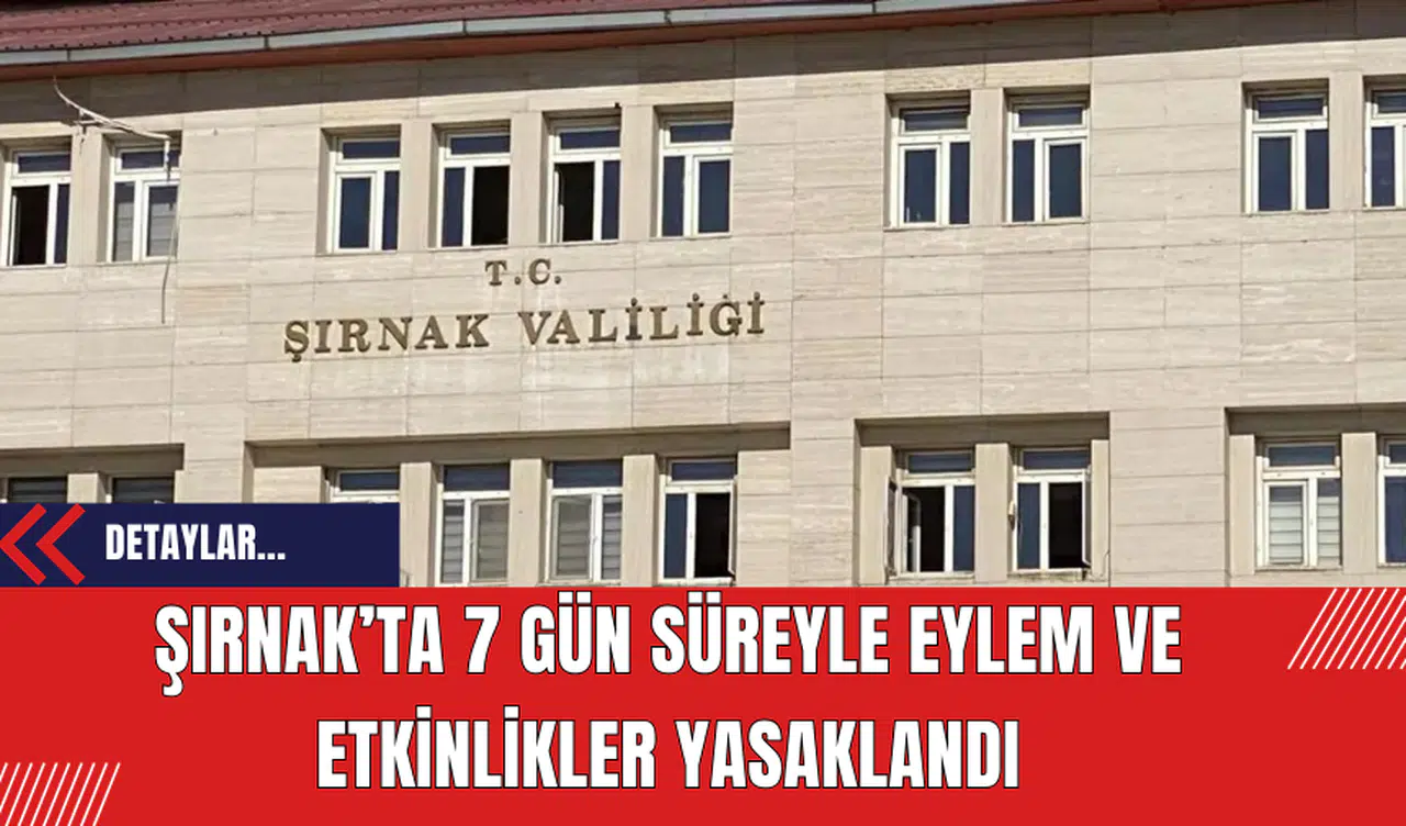 Yasak, 04.06.2024 günü saat 00.01’den başlayarak, 10.06.2024 günü saat 23:59’a kadar 7 (yedi) gün süreyle devam edecek. Bu süre zarfında, Şırnak il merkezi ve ilçeler dahil olmak üzere, tüm il sınırları içerisinde belirtilen eylem ve etkinliklerin yapılması yasaklanmıştır.