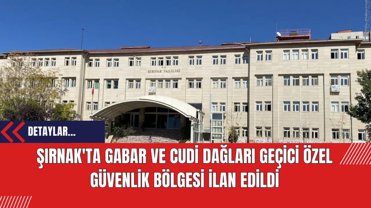 Şırnak Valiliği, Gabar Dağı ve Cudi Dağı bölgelerinde 15 gün süreyle geçici özel güvenlik bölgesi ilan edildiğini duyurdu.