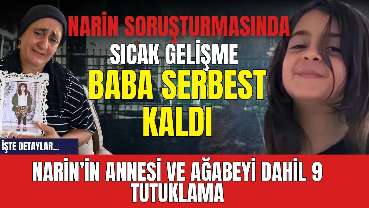 Diyarbakır'da 8 yaşındaki Narin Güran'ın cinayetiyle ilgili yürütülen soruşturma kapsamında, anne Yüksel Güran ve ağabeyi Enes Güran'ın da bulunduğu 9 kişi tutuklama talebiyle mahkemeye sevk edildi. Soruşturma sürecinde, 3 kişi adli kontrol şartıyla mahkemeye sevk edilirken, 10 kişi serbest bırakıldı. Serbest bırakılanlar arasında Narin Güran’ın babası Arif Güran da bulunuyor.