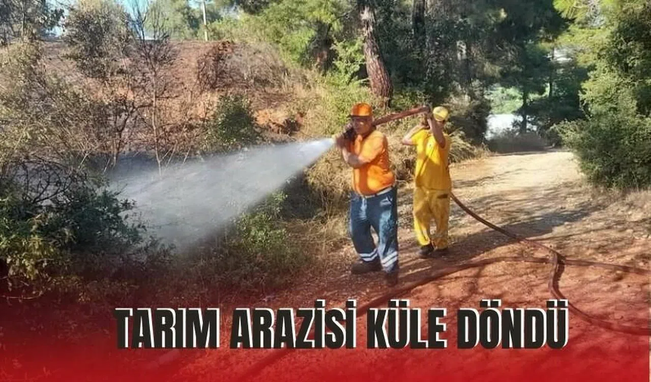 Yangında 7 adet kızılçam ağacı ile arazilerdeki anızların yandığı bildirildi.