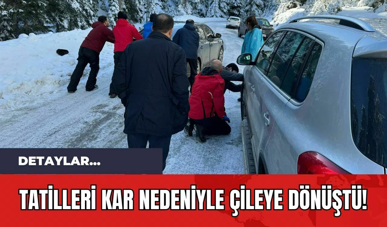 Bolu'nun popüler turizm destinasyonlarından biri olan Kartalkaya Kayak Merkezi'ne gitmek isteyen tatilciler, yoğun kar yağışı ve buzlanma nedeniyle zor anlar yaşadılar. Yol boyunca araçlarını sürdürmekte güçlük çeken birçok kişi, Kartalkaya yolunda mahsur kaldı.
