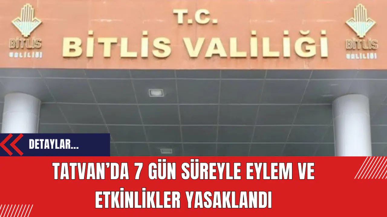 Bitlis’in Tatvan ilçesinde, Valilik kararıyla 7 gün süreyle toplantı, gösteri yürüyüşleri ve basın açıklaması gibi eylem ve etkinliklerin düzenlenmesi yasaklandı.