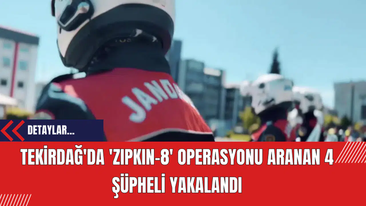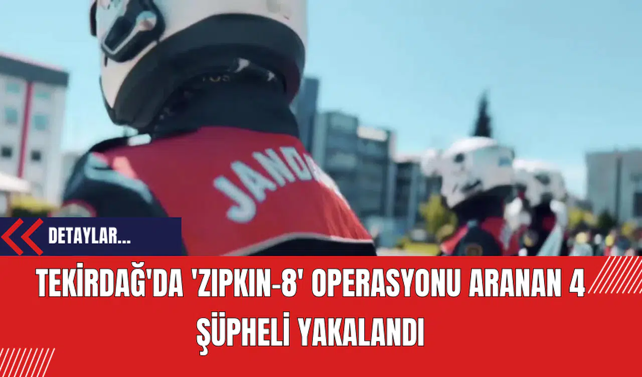 Tekirdağ’ın Çorlu ilçesinde jandarma ekipleri, 'Zıpkın-8' adlı geniş kapsamlı bir operasyon düzenledi. Operasyon kapsamında yapılan kontrollerde, çeşitli suçlardan aranan 4 şüpheli yakalandı. Bu uygulama, bölgedeki güvenliğin artırılması ve suçla mücadele amacıyla gerçekleştirildi.