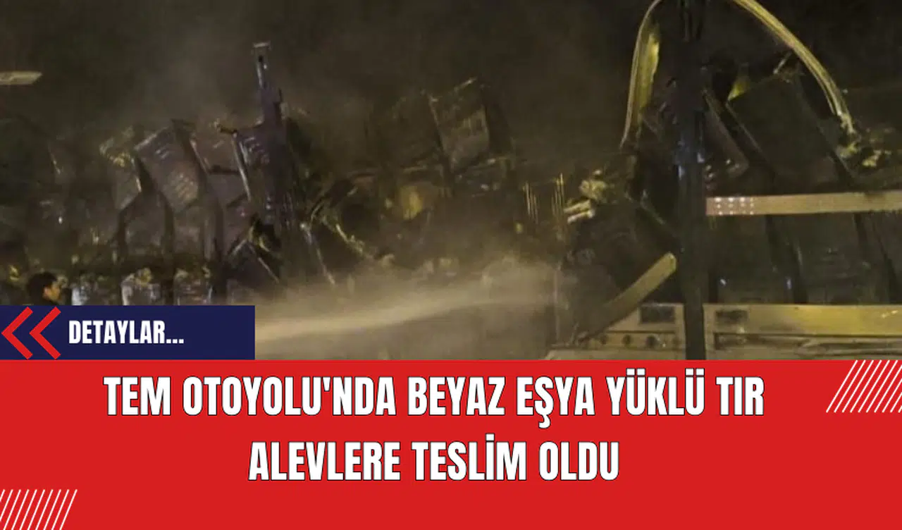 TEM Otoyolu'nun Kocaeli geçişinde beyaz eşya yüklü tır alev aldı. Yangın sonucunda dorsede bulunan beyaz eşyalar tamamen kullanılmaz hale geldi. Ankara istikametinde trafik tek şeritten kontrollü olarak ilerliyor.