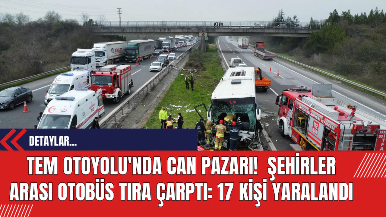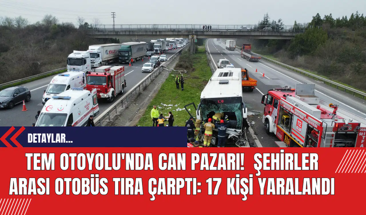 TEM Otoyolu Düzce geçişinde, İstanbul'dan Ankara'ya seyir halindeki bir şehirler arası yolcu otobüsünün bir tıra arkadan çarpması sonucu meydana gelen kaza, 17 kişinin yaralanmasına neden oldu.