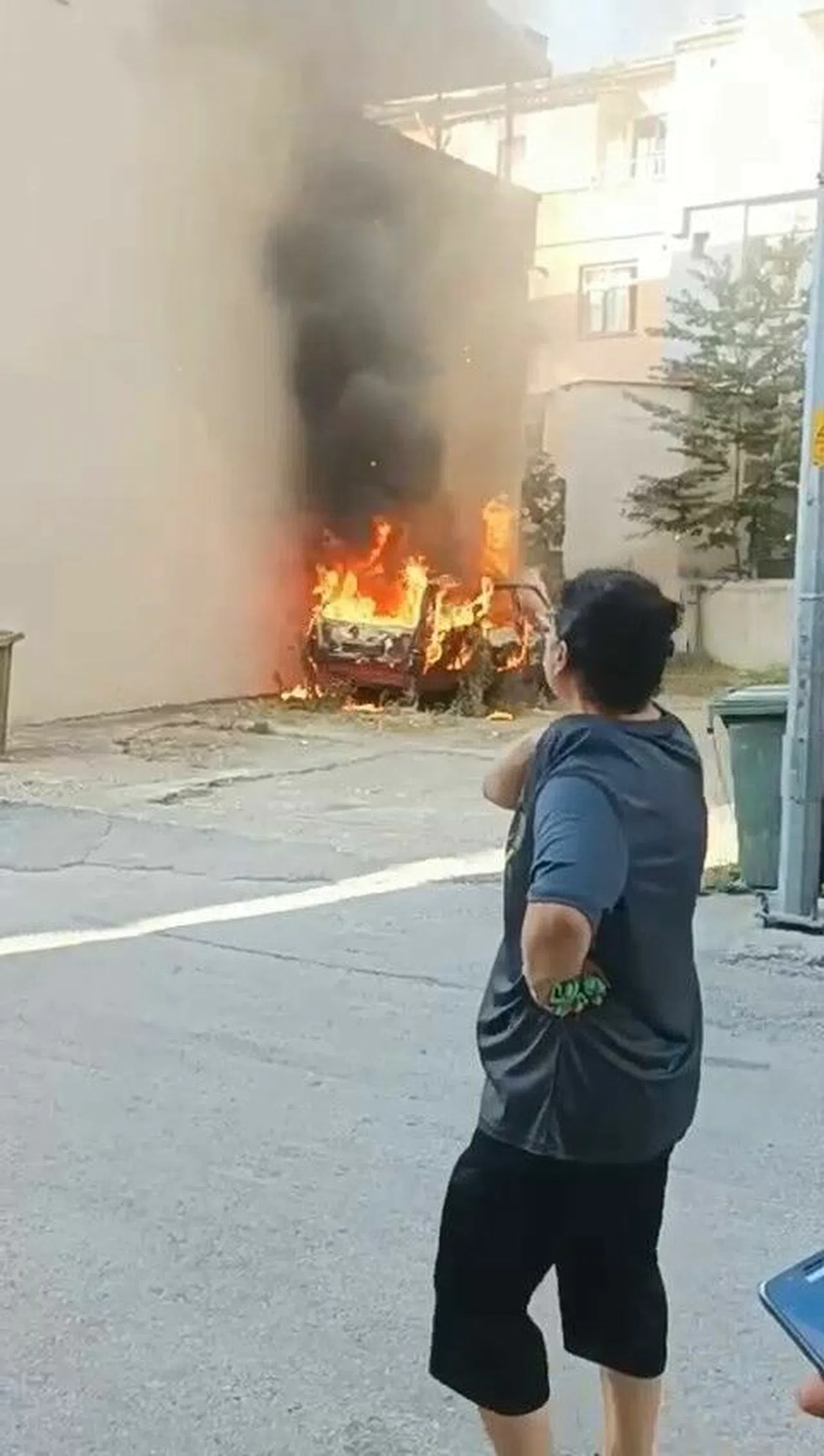 Kısa süre sonra olay yerine ulaşan ekipler yangını kısa sürede söndürürken, alevlerin sardığı otomobil kullanılamaz hale geldi.