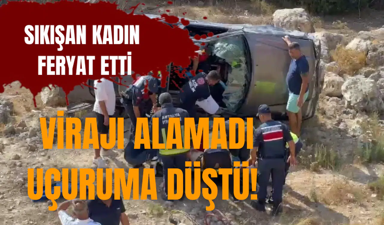 Antalya’da virajı alamayan otomobil çelik bariyerlere çarpıp takla atarak 10 metrelik uçurumdan aşağı yuvarlandı.